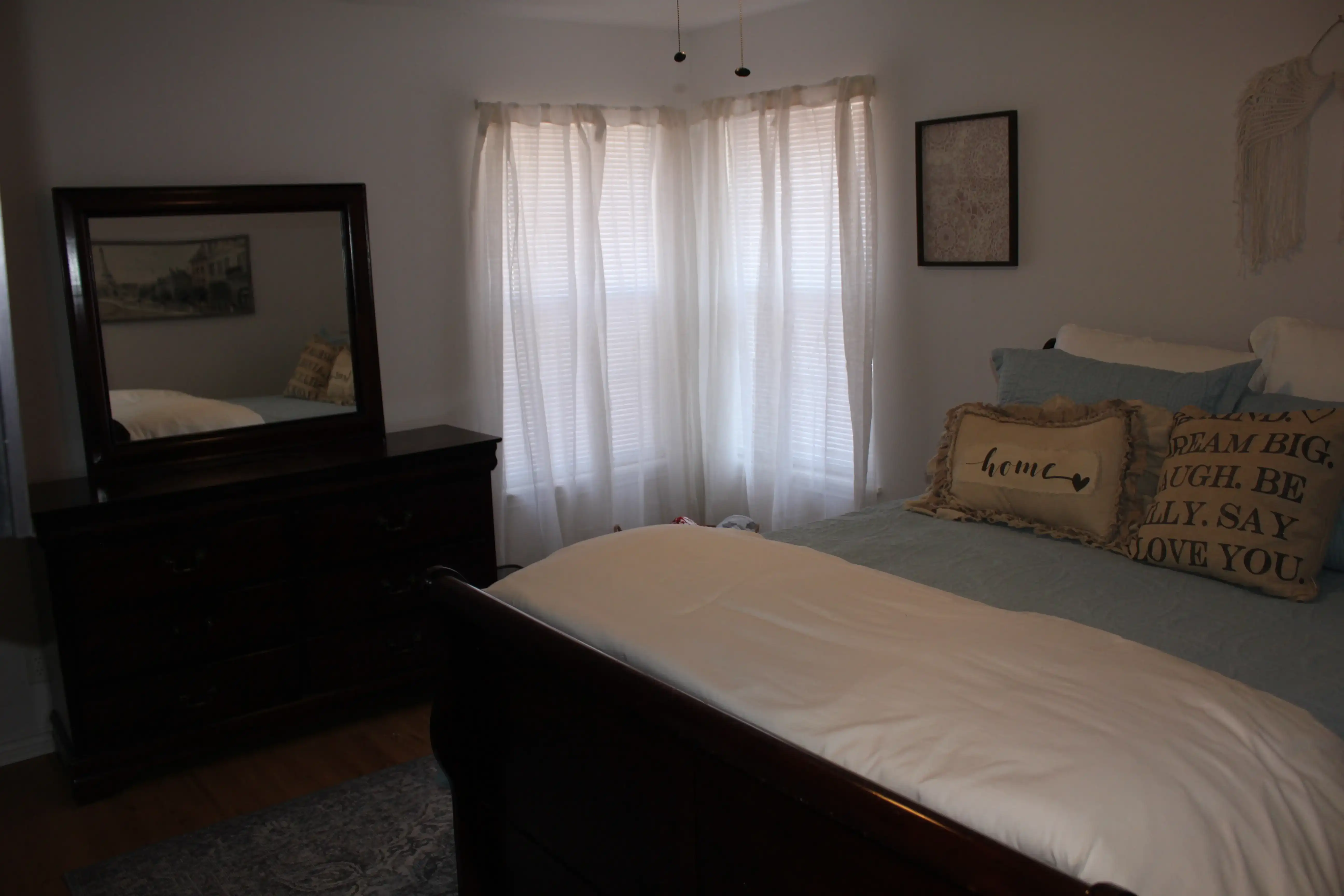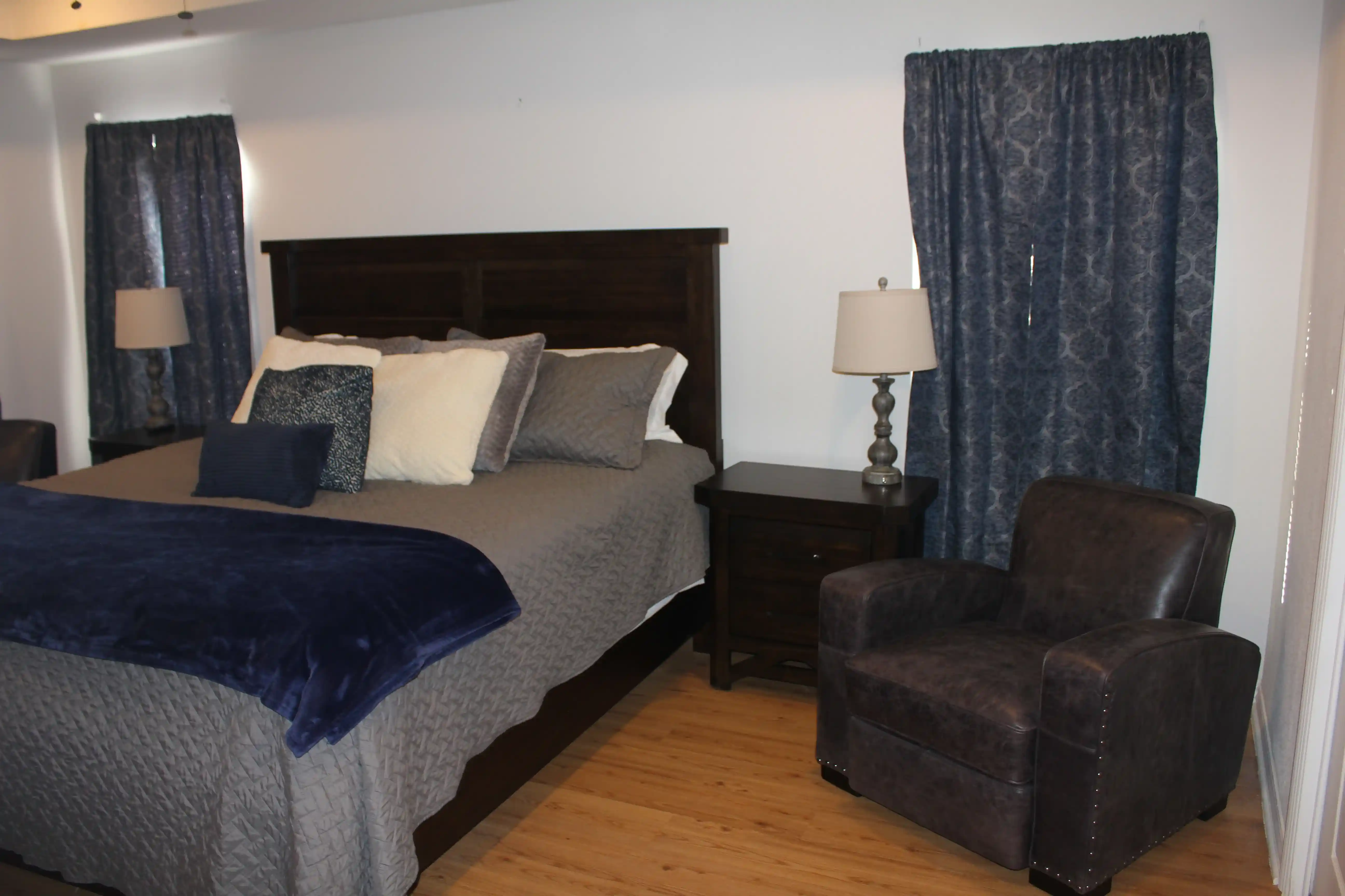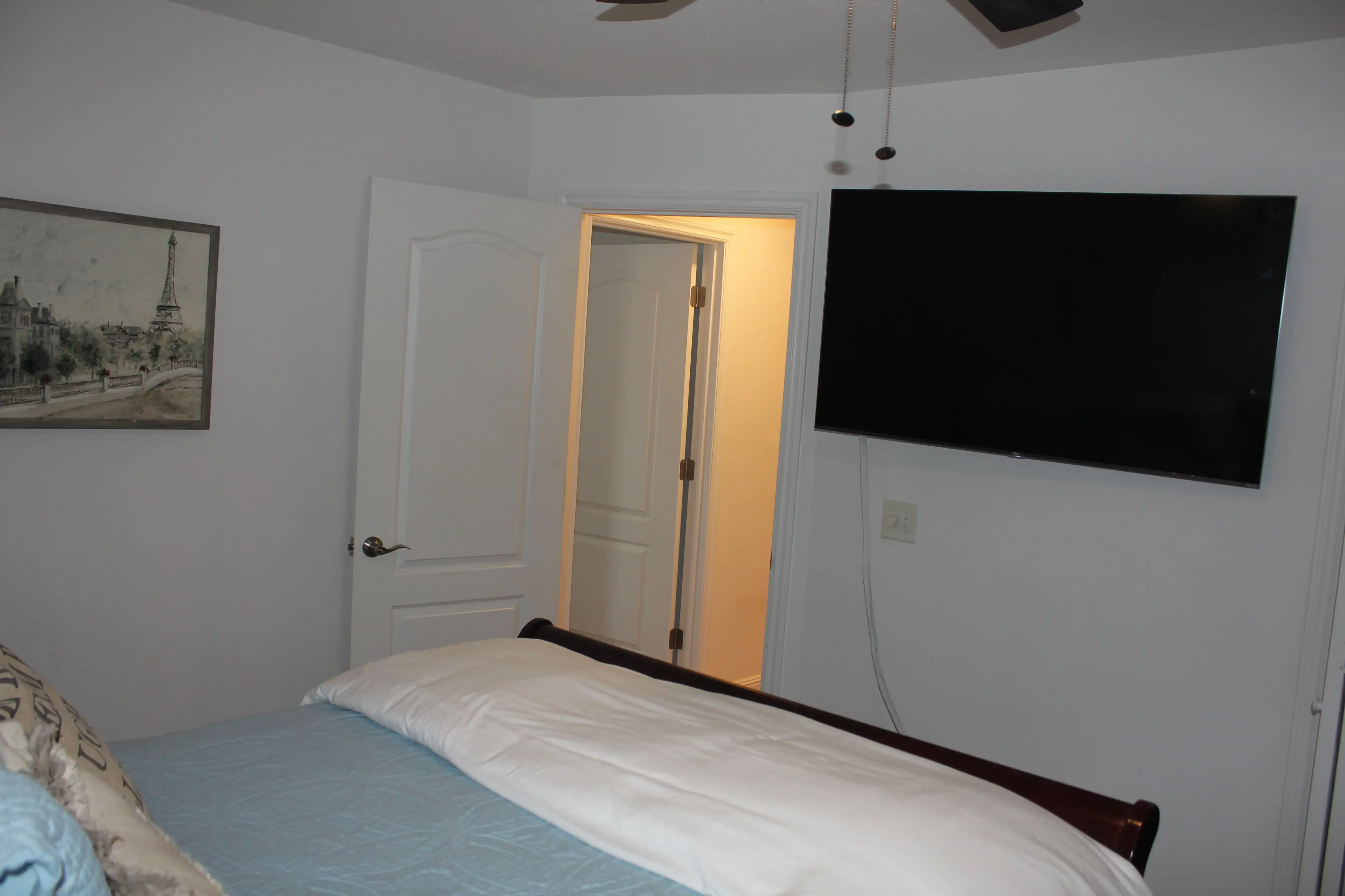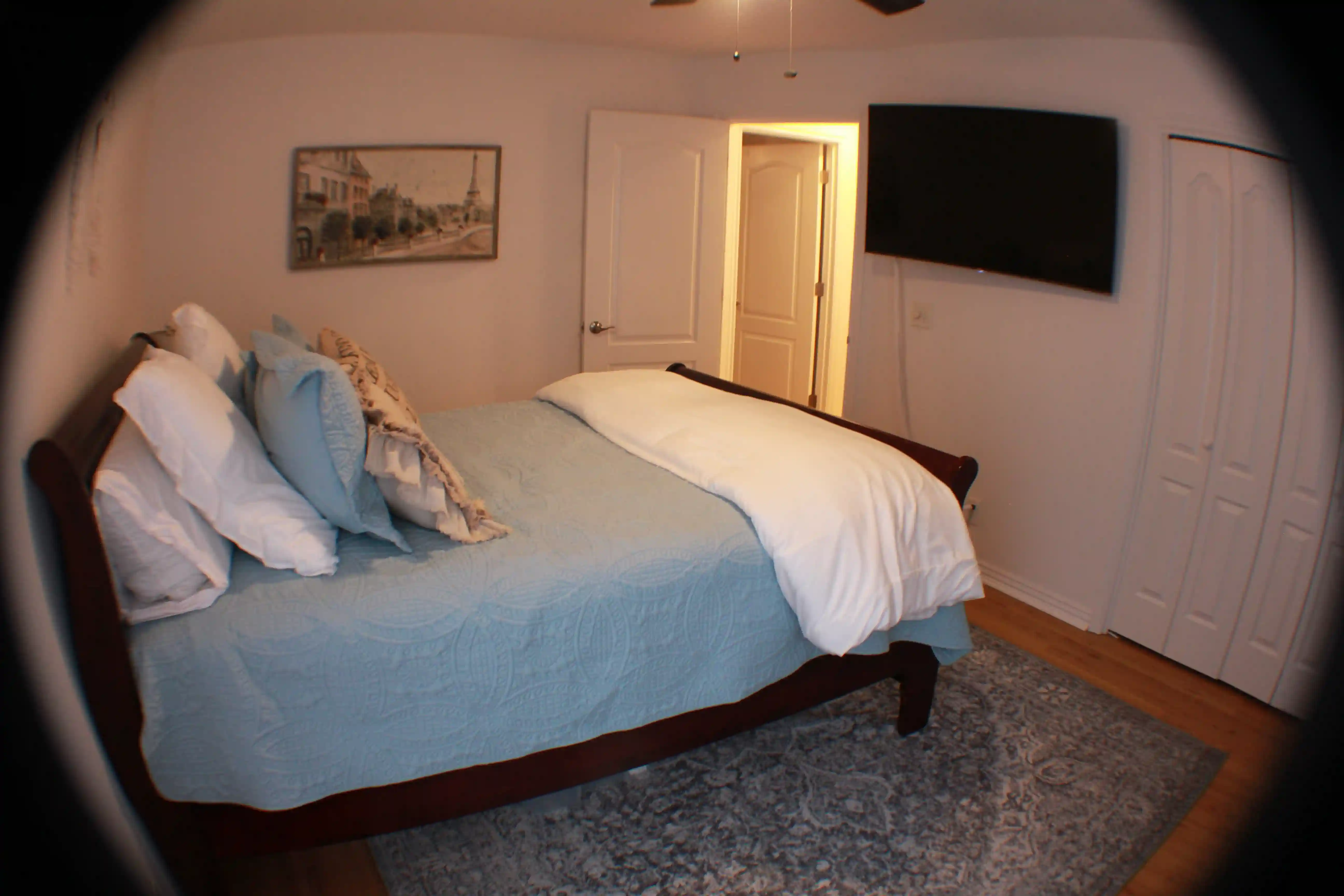 Master bedroom has a king size bed with new Furniture Row pillow top mattress, a completely remodeled master bath with a new claw foot soaker tub, a new walk-in rainfall shower and a 45" 4k Smart TV.