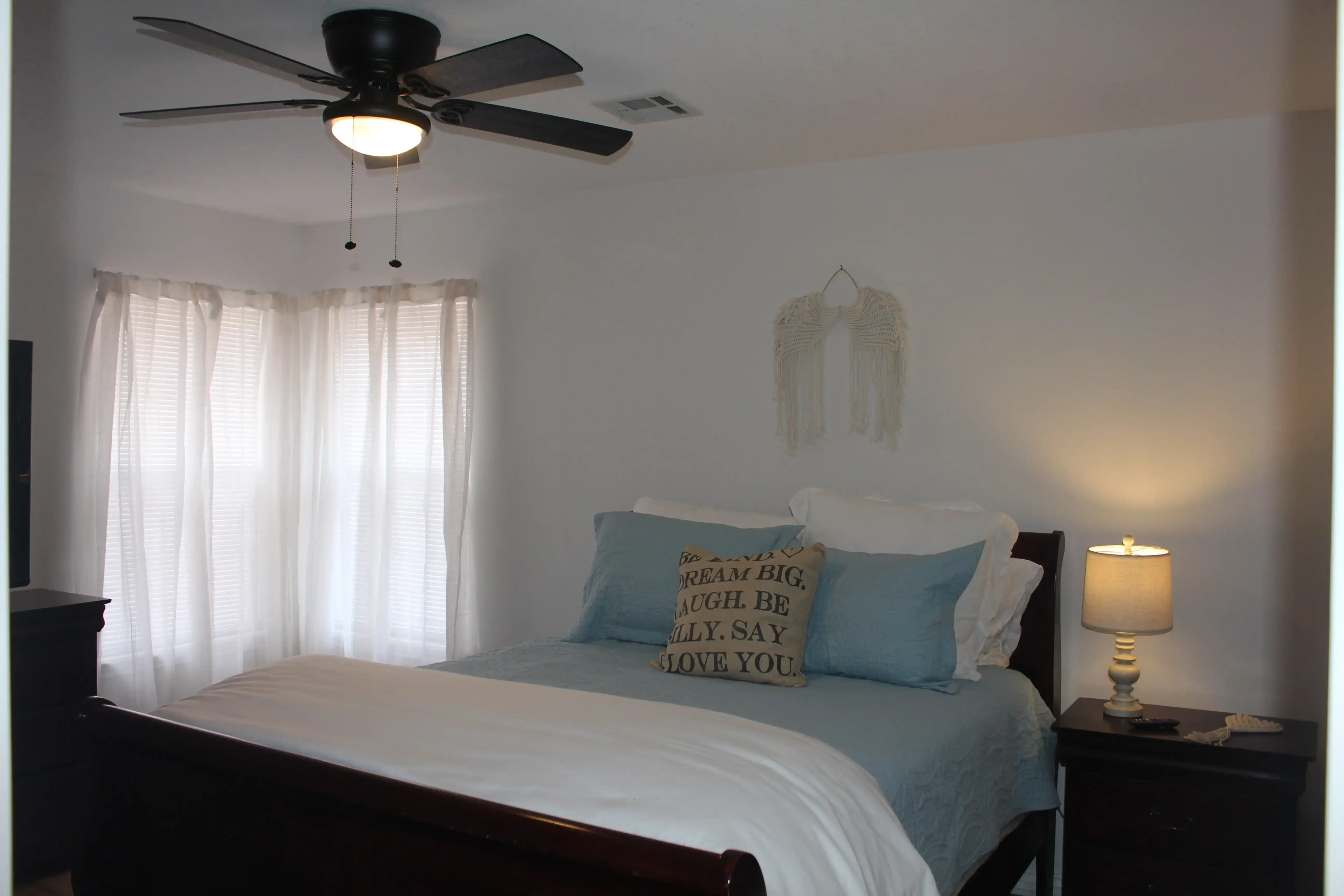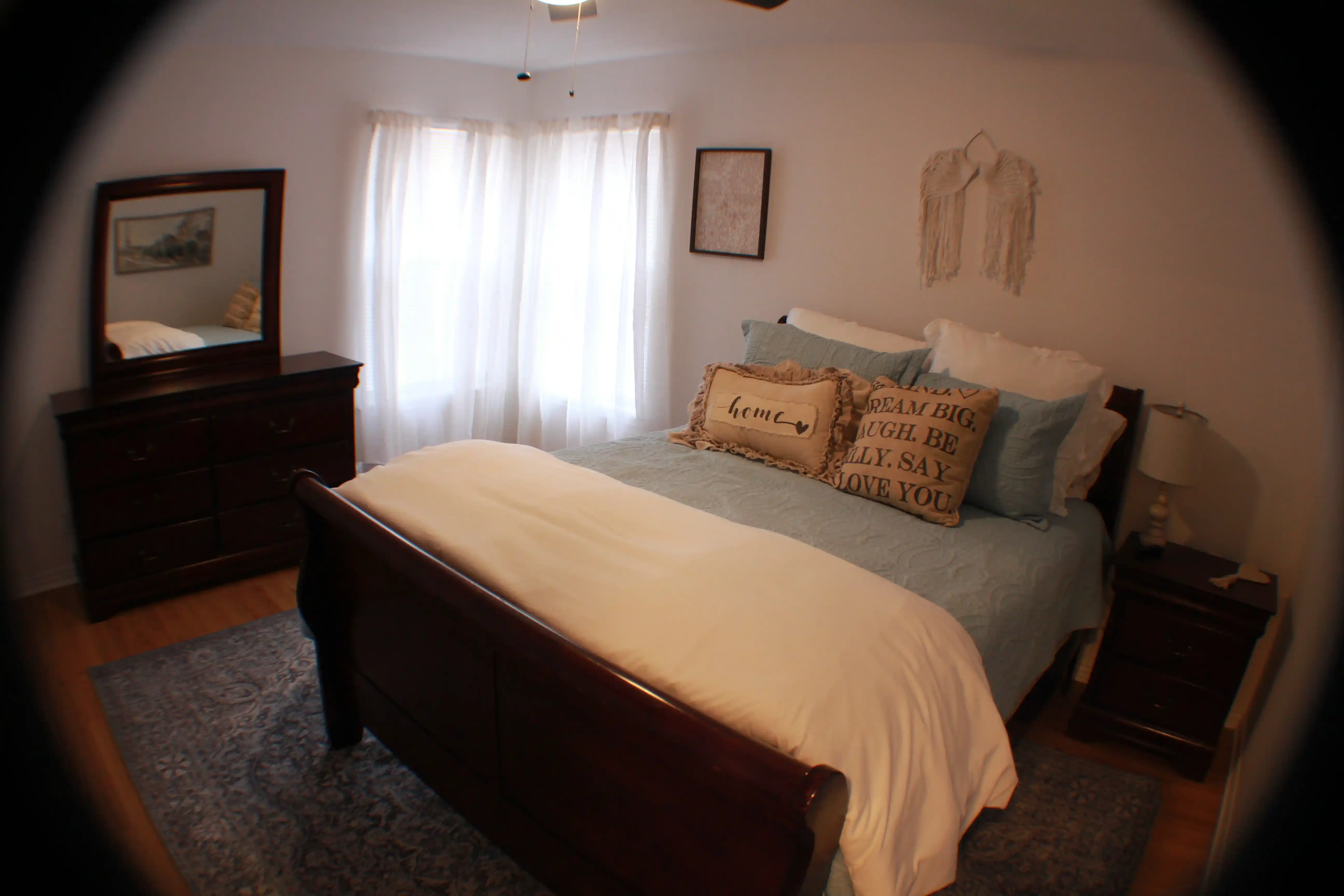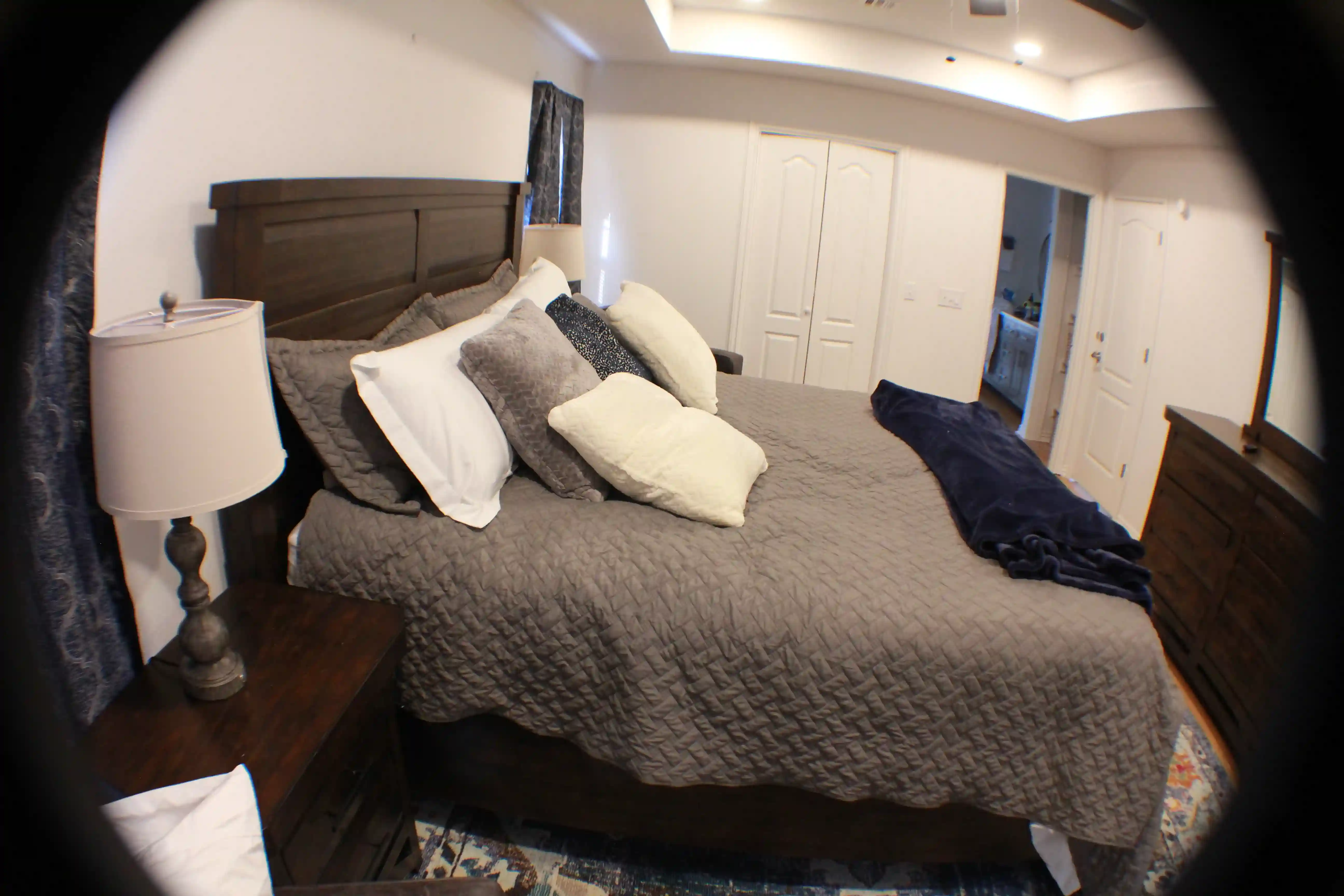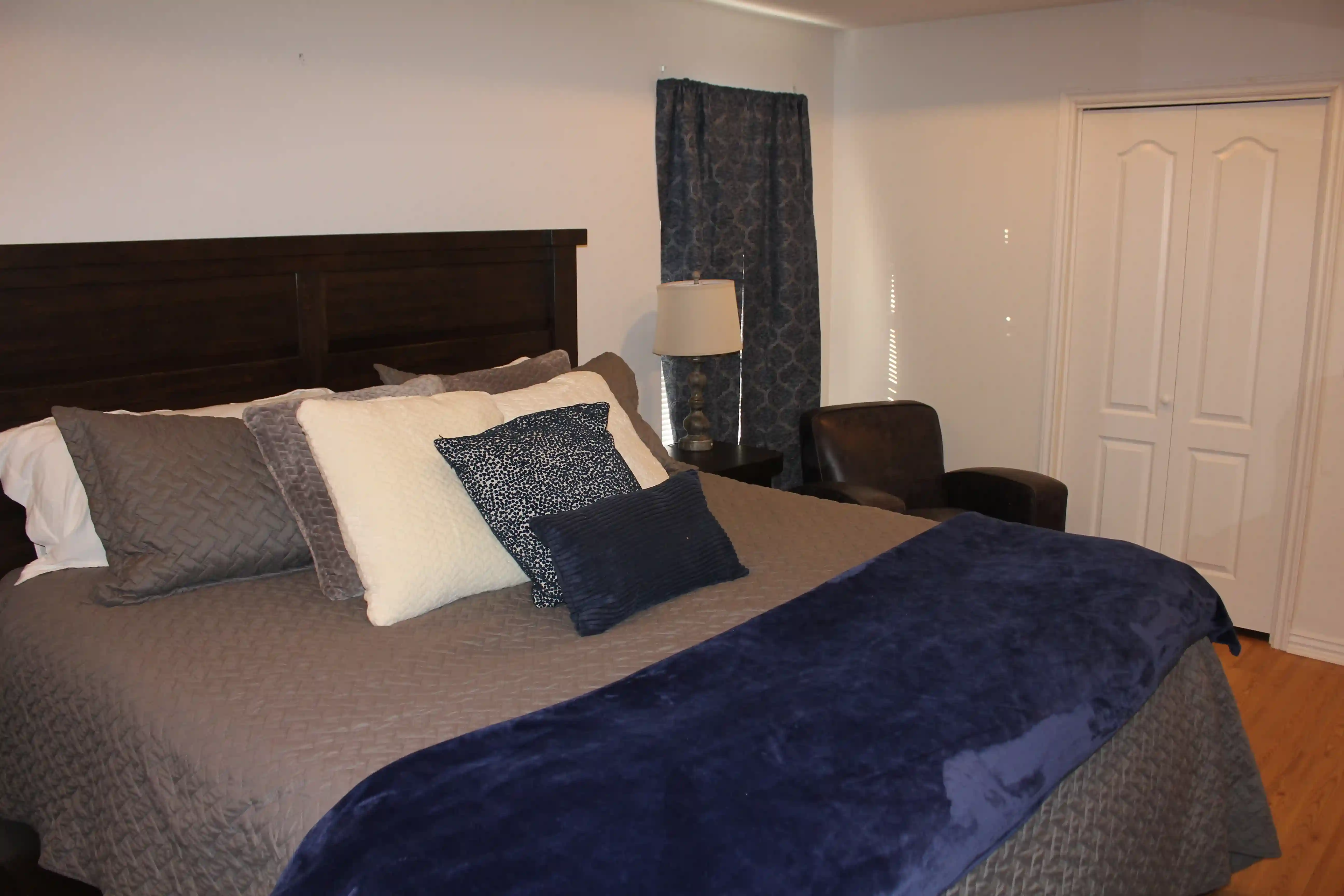 Master bedroom has a king size bed with new Furniture Row pillow top mattress, a completely remodeled master bath with a new claw foot soaker tub, a new walk-in rainfall shower and a 45" 4k Smart TV.
