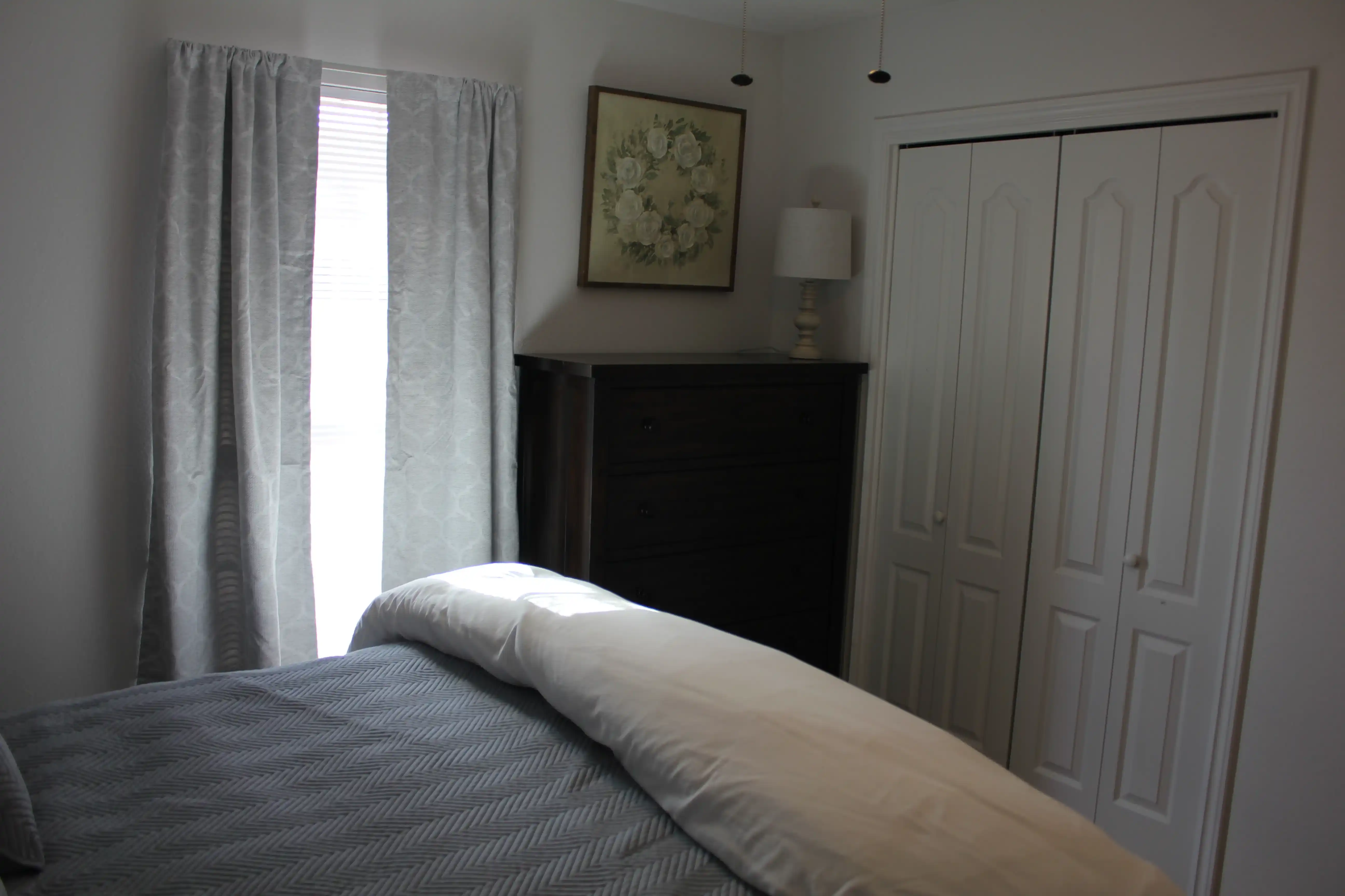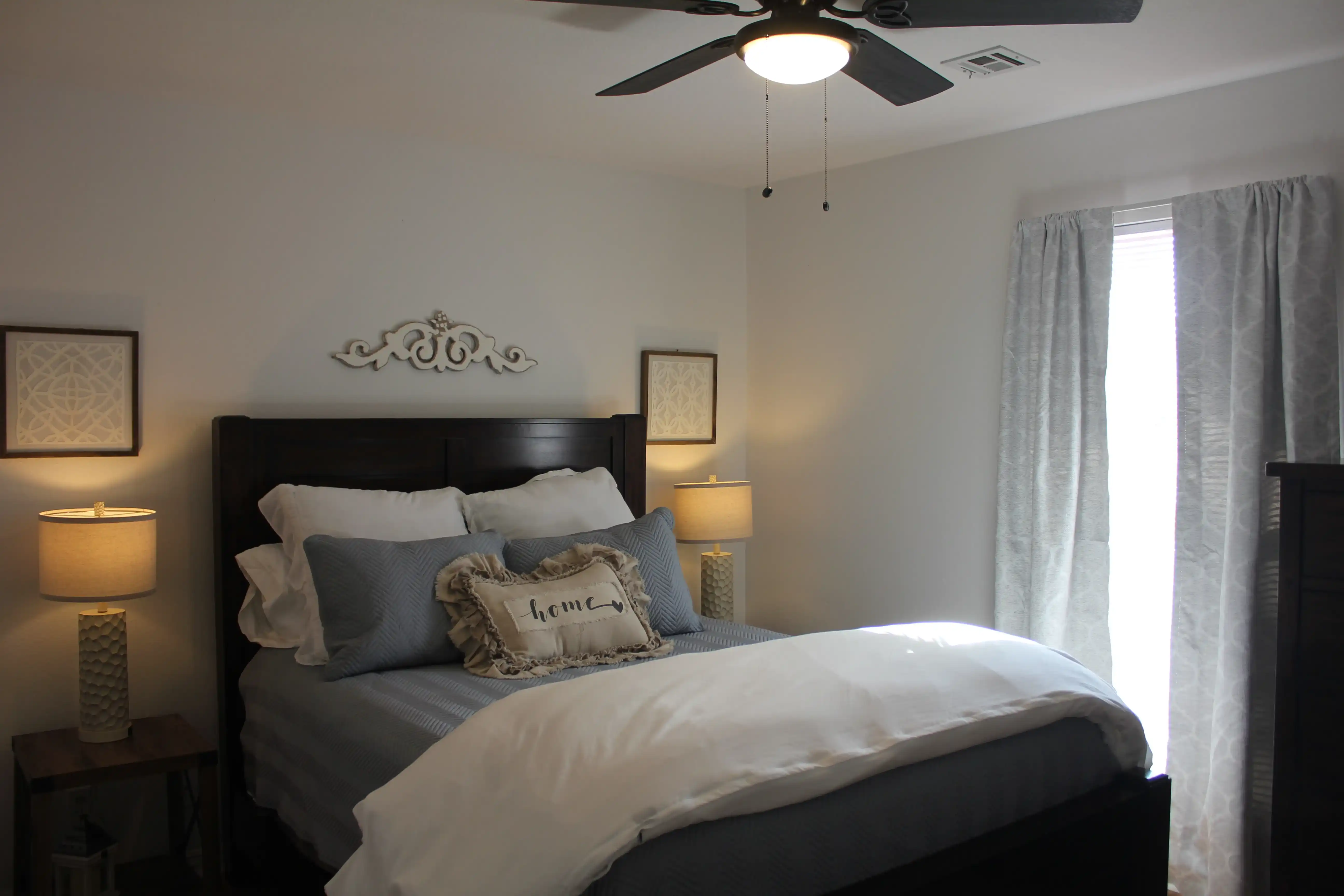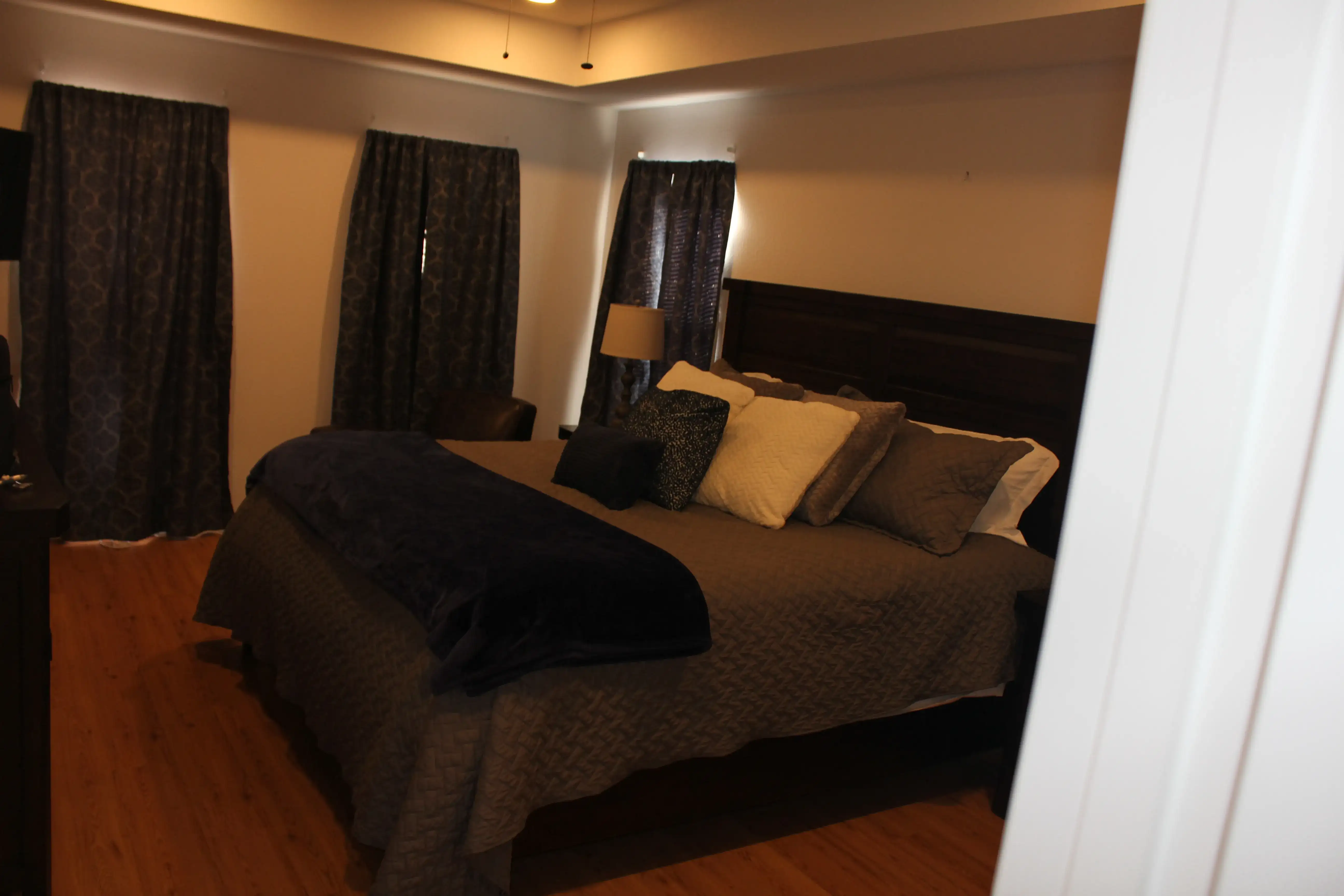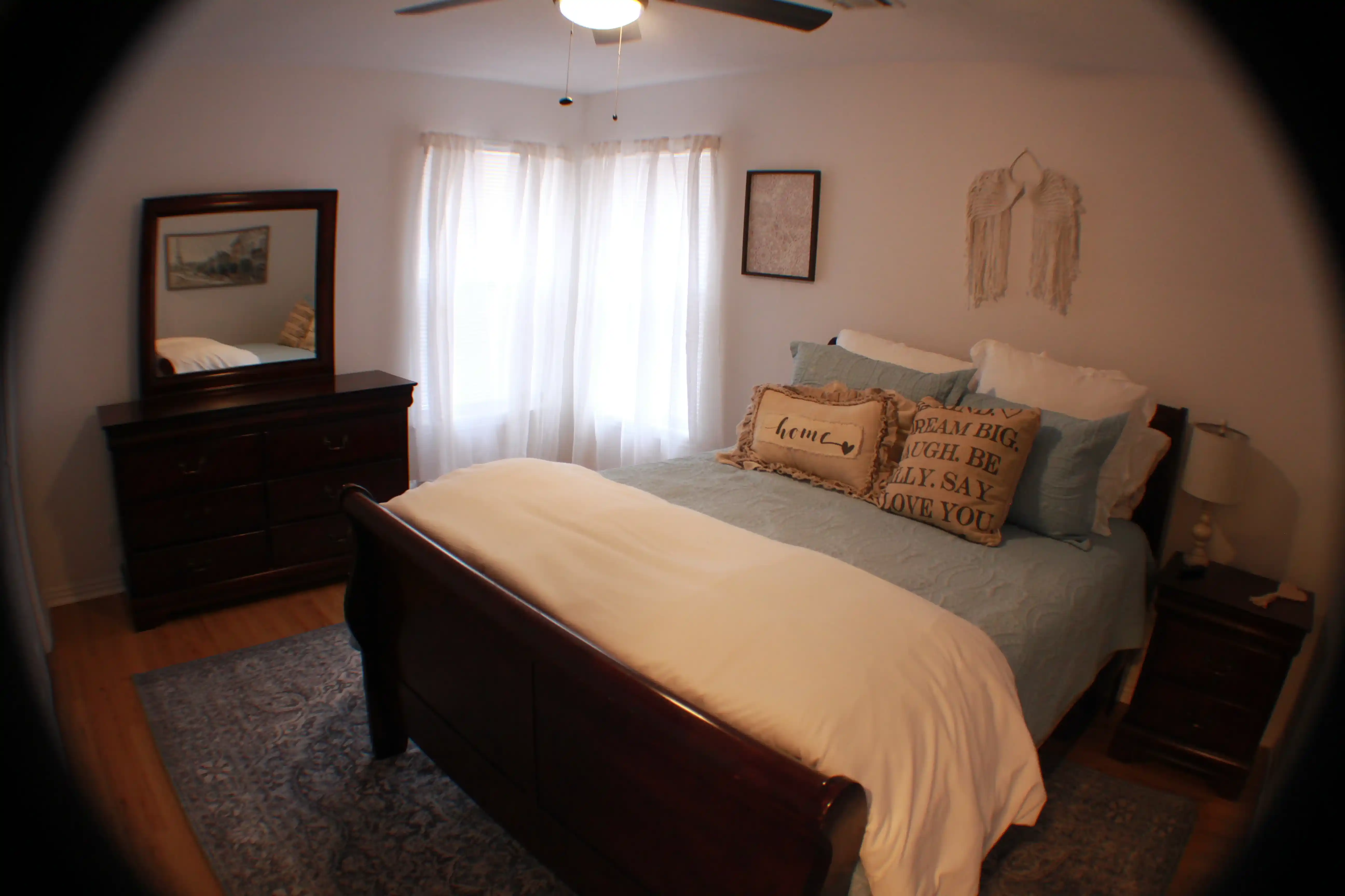 Master bedroom has a king size bed with new Furniture Row pillow top mattress, a completely remodeled master bath with a new claw foot soaker tub, a new walk-in rainfall shower and a 45" 4k Smart TV.