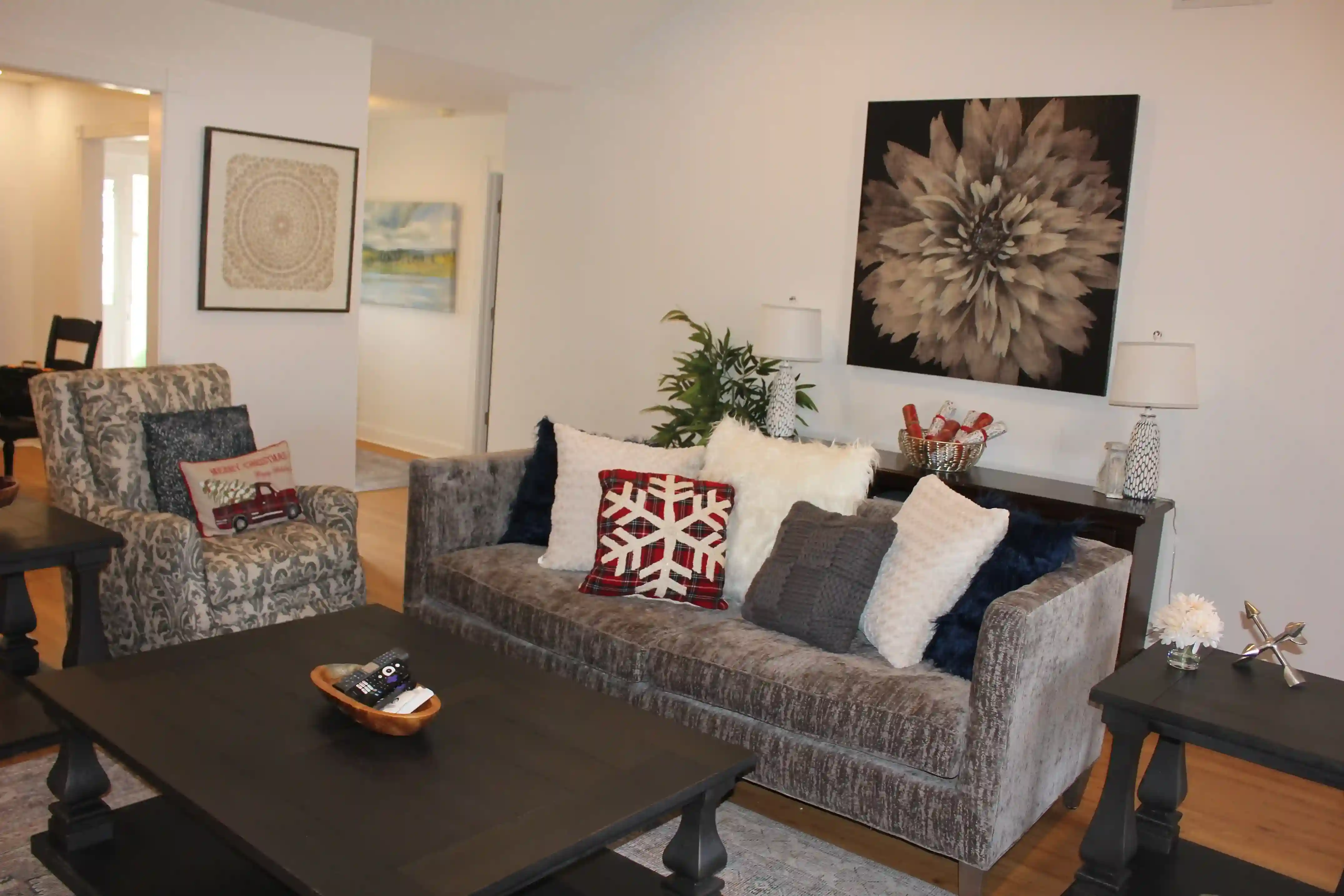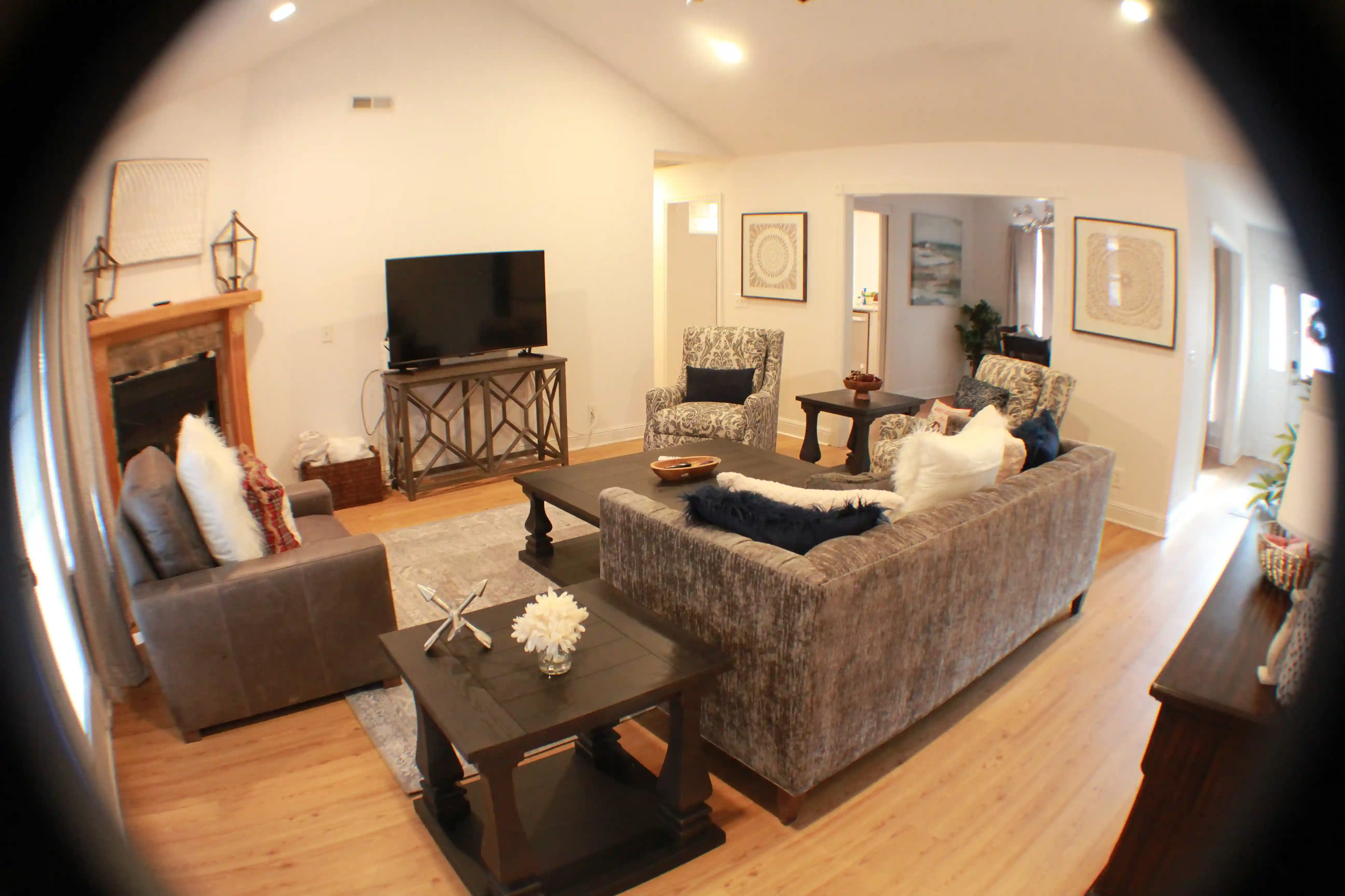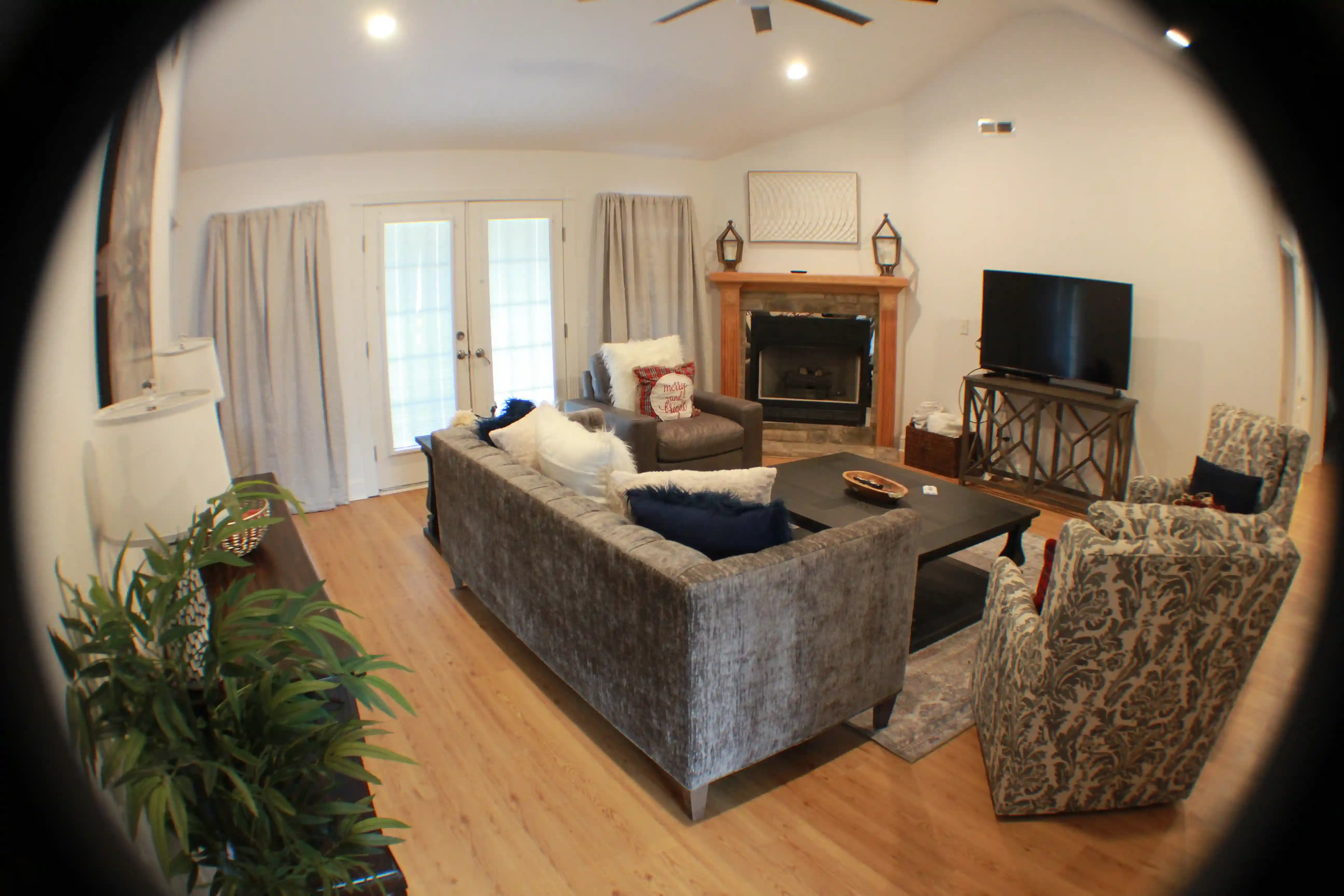 Luxurious family room with 55" 4k Smart TV.