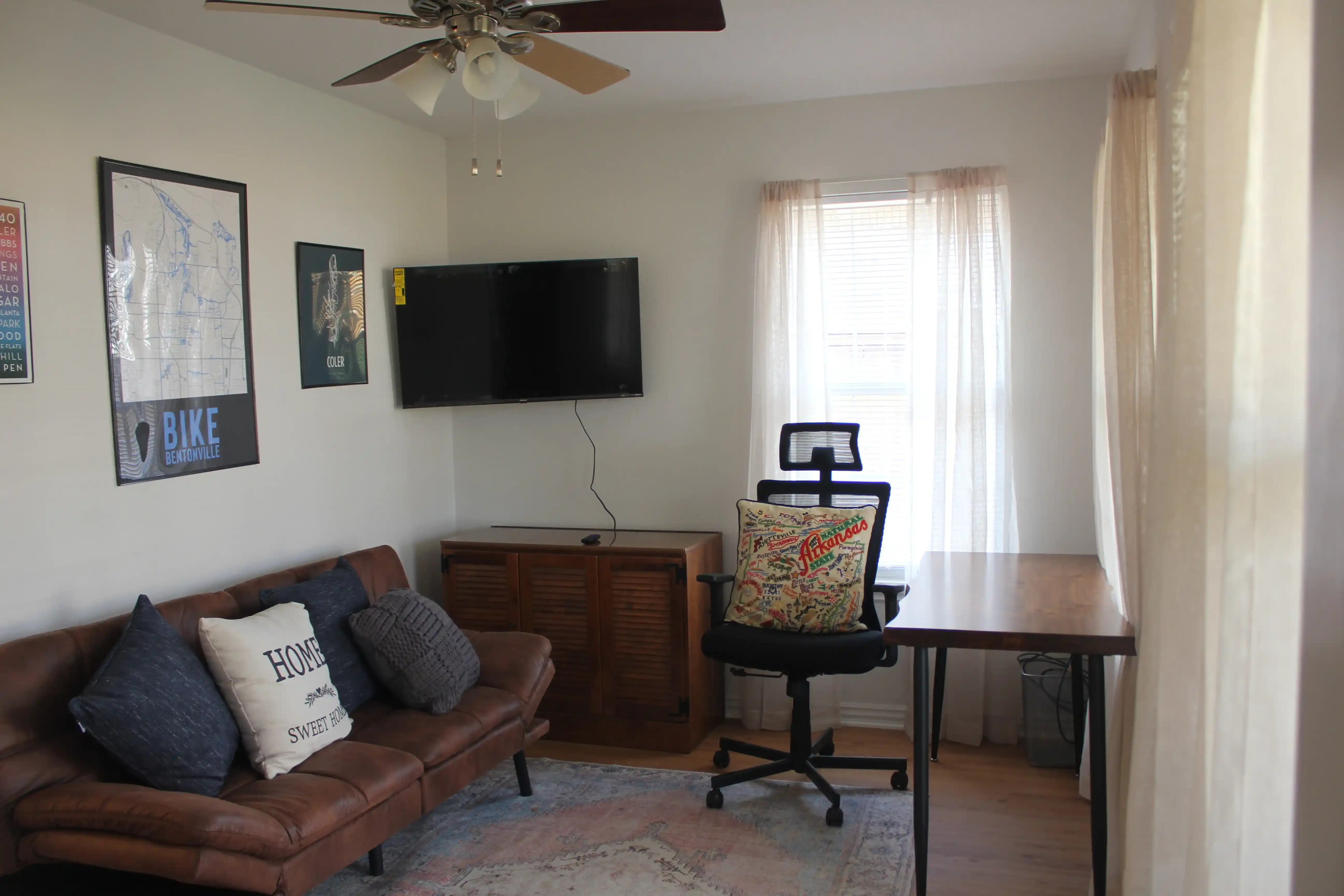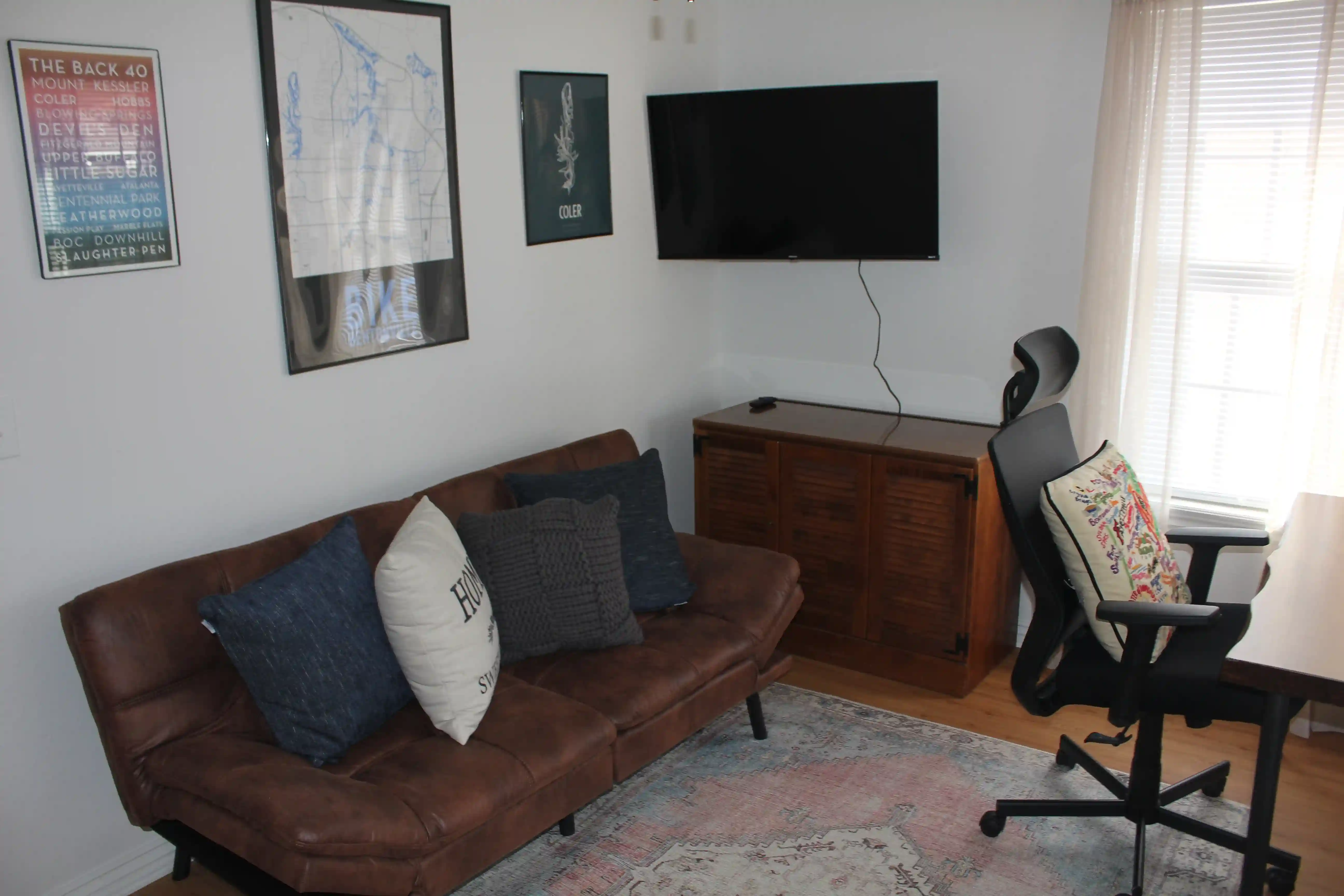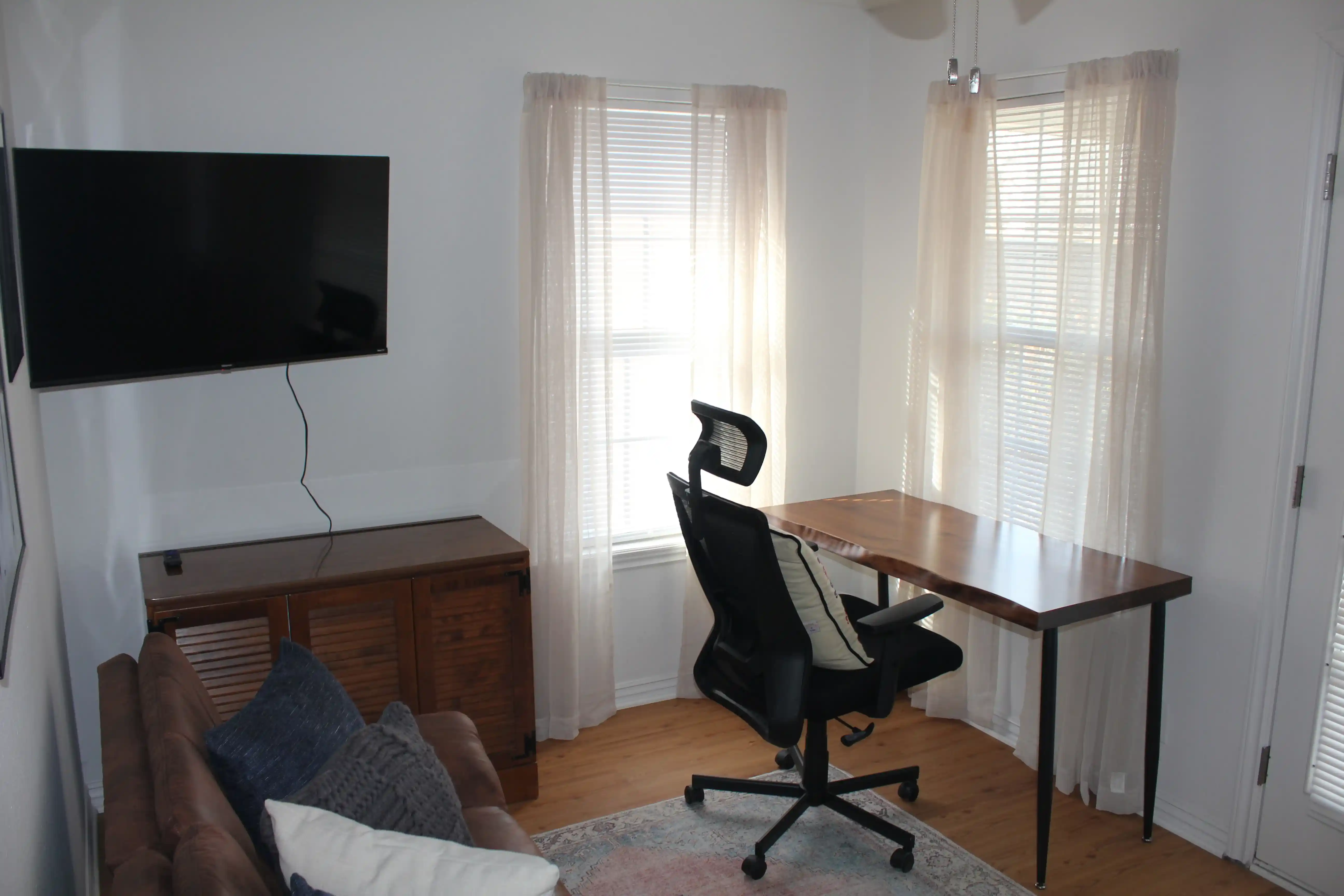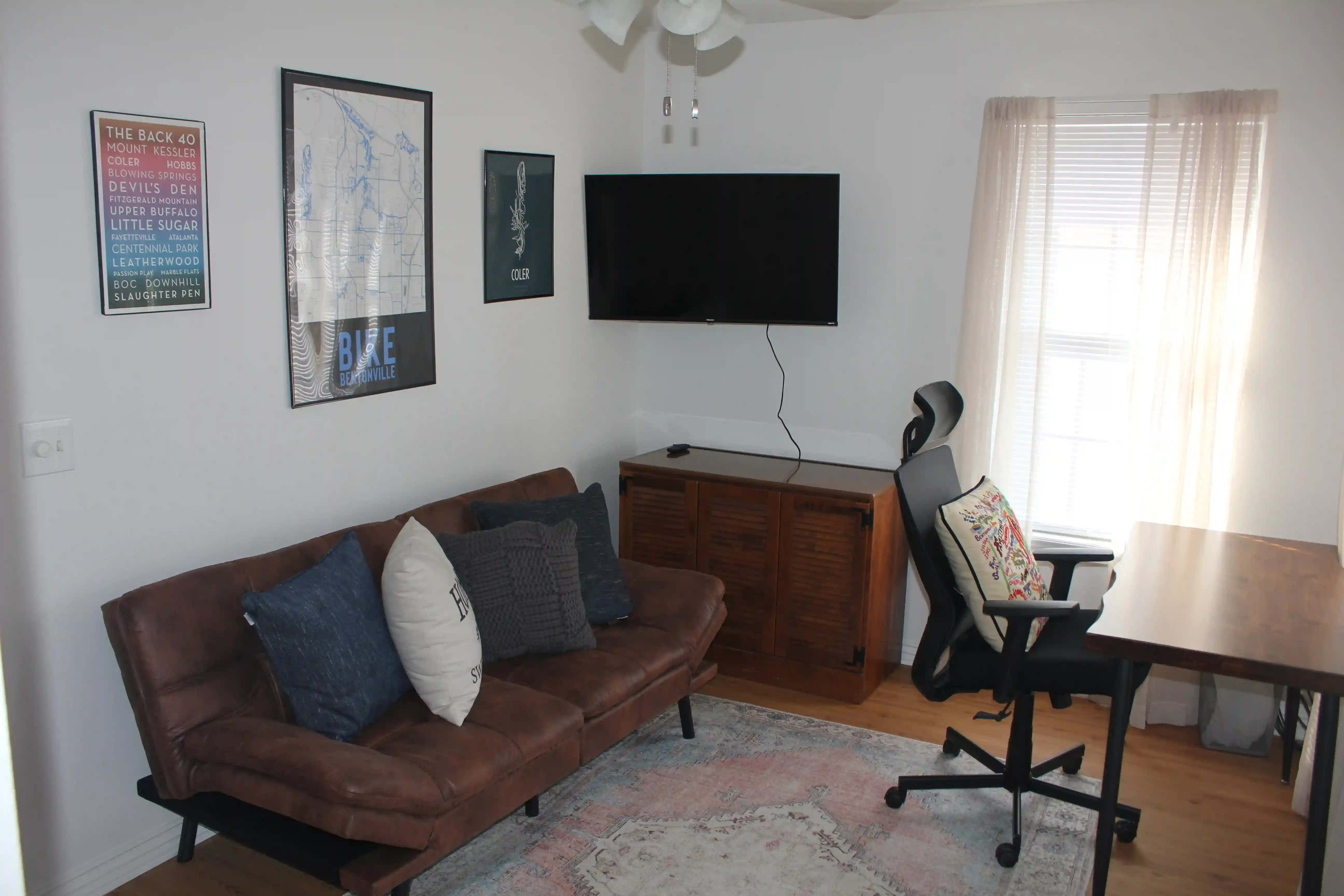 Final bedroom/office with new leather futon and a 55'" 4k Smart TV.