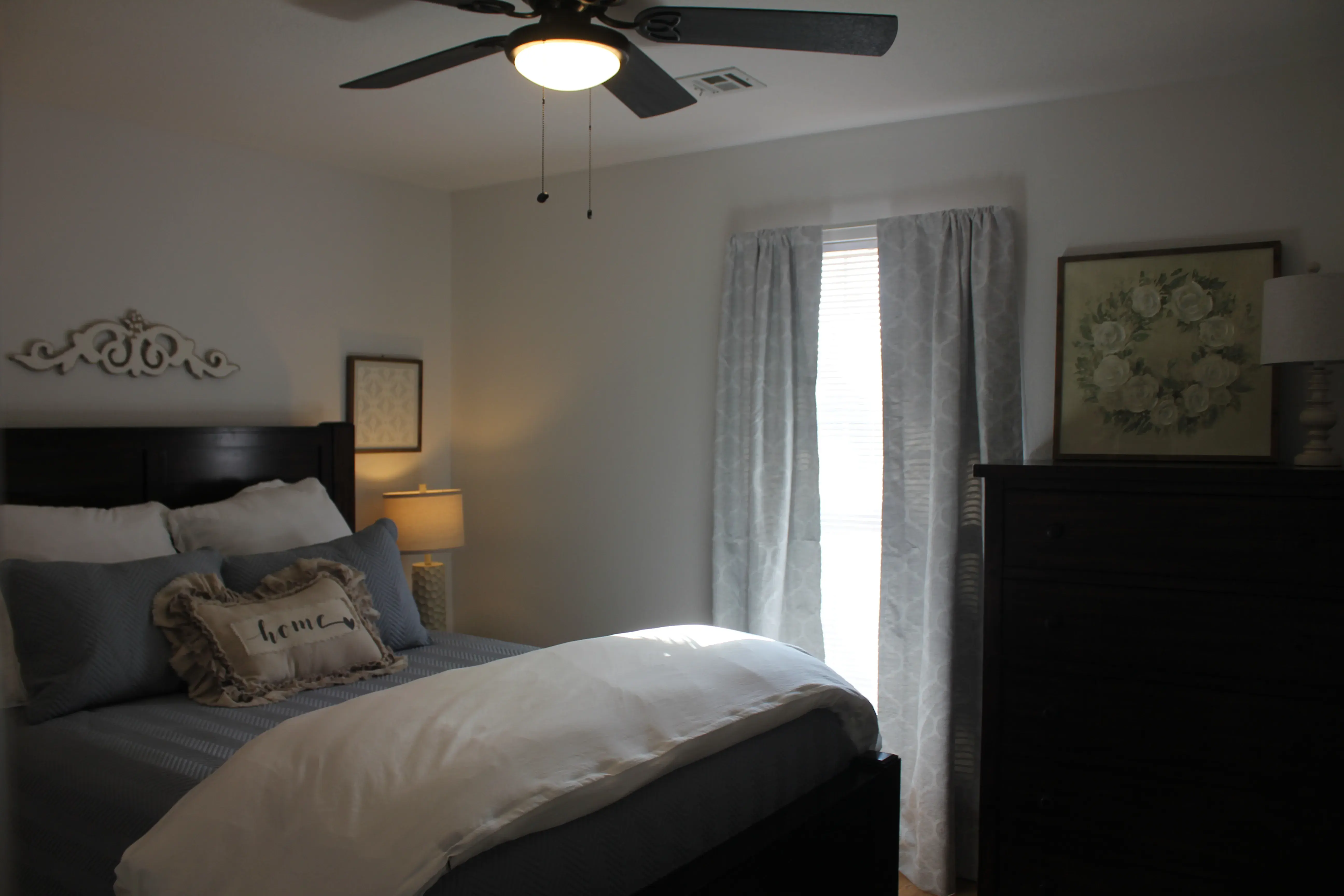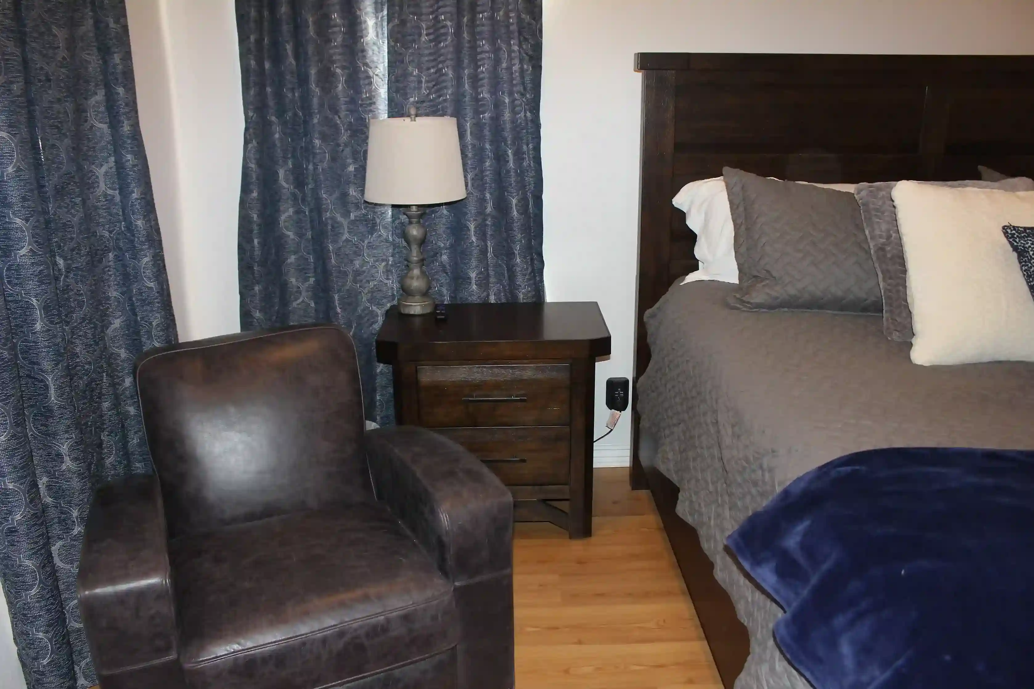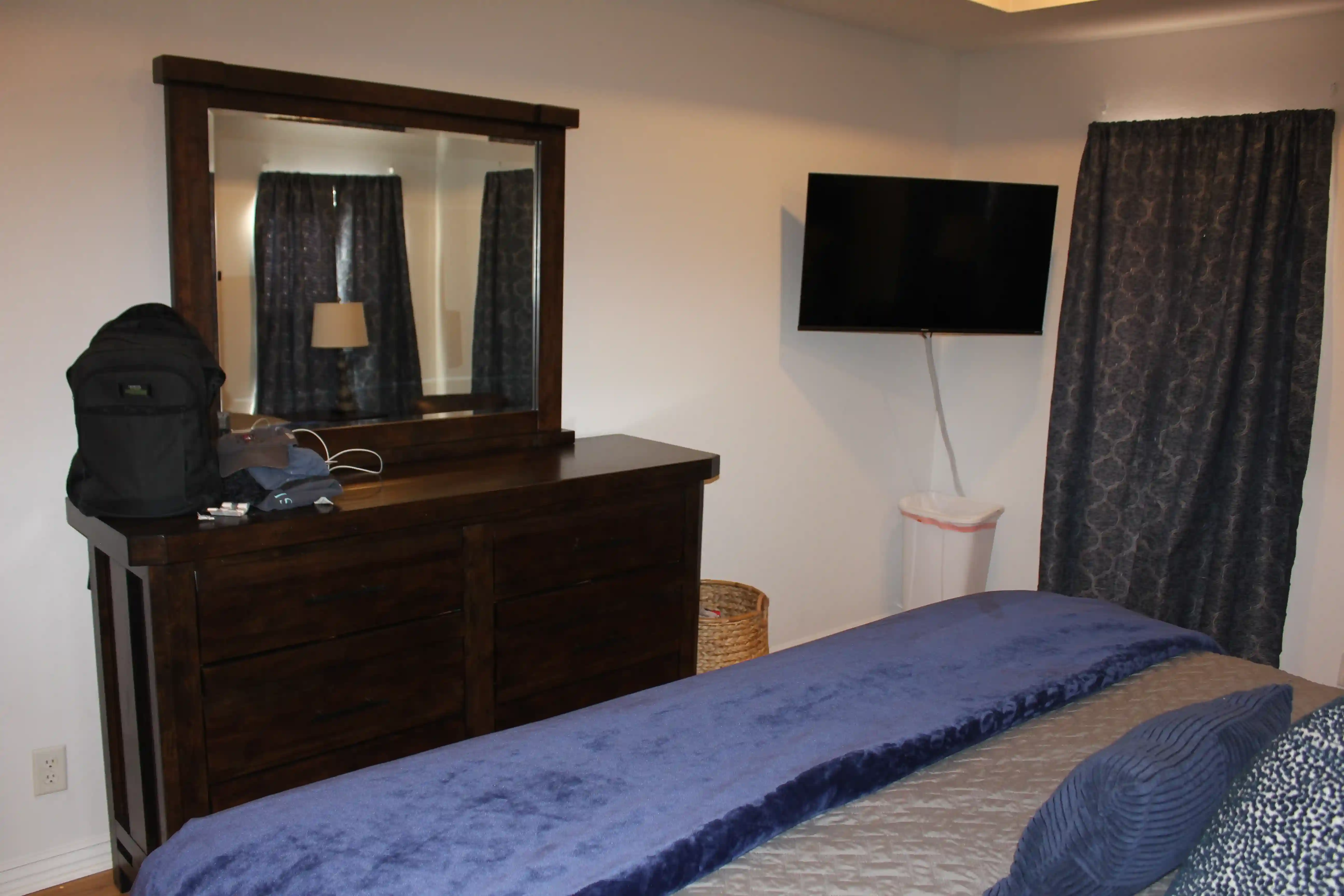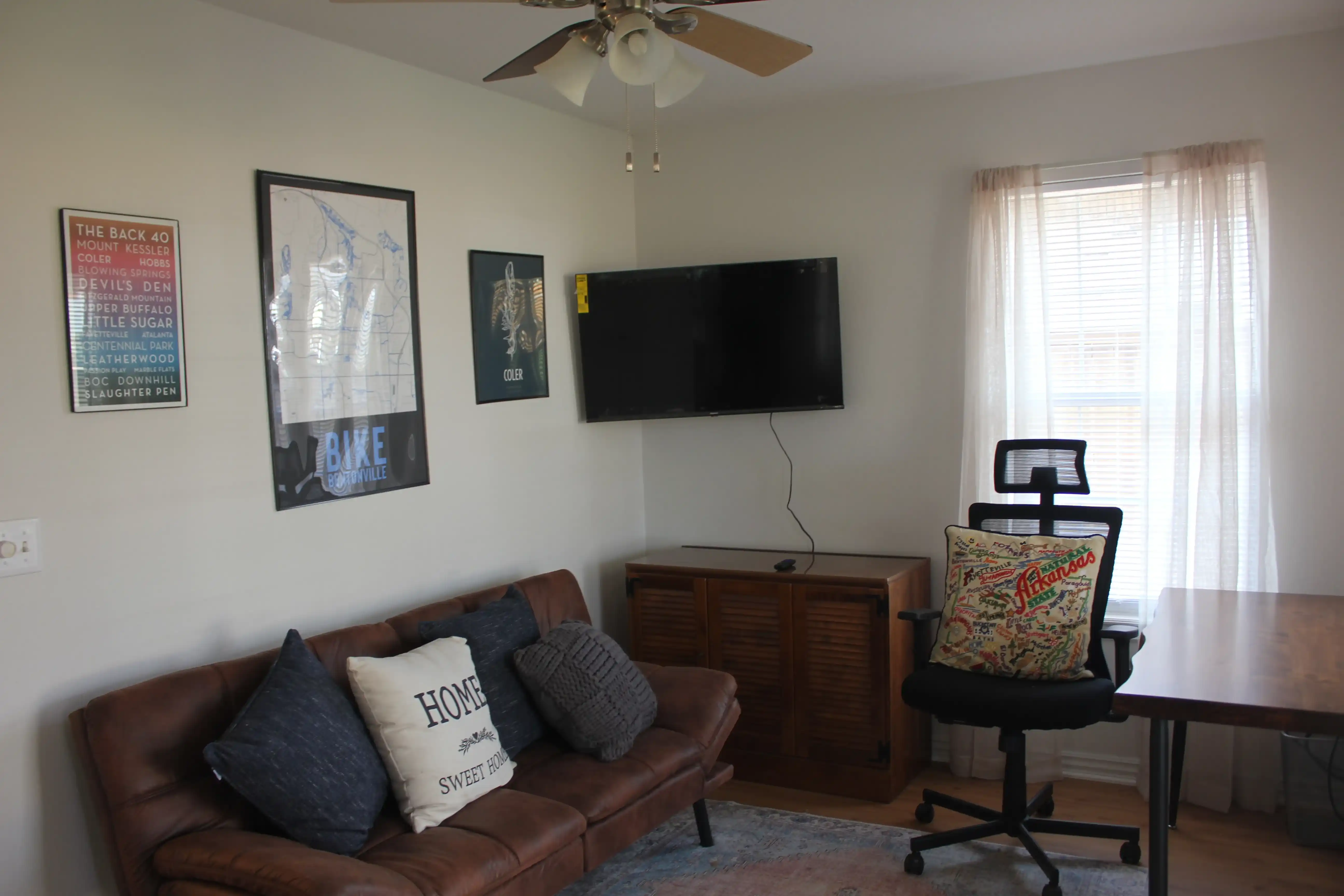 Final bedroom/office with new leather futon and a 55'" 4k Smart TV.